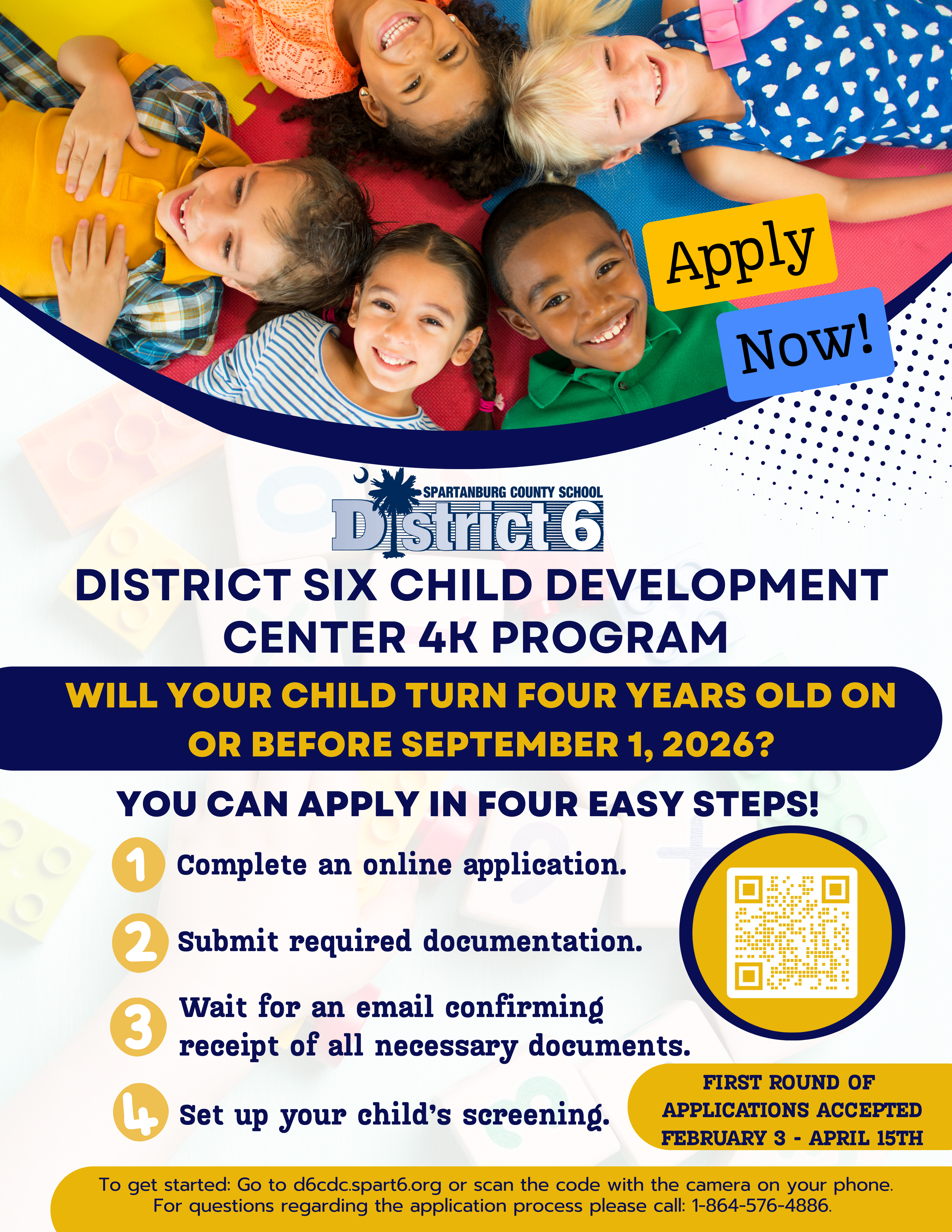 Pre-Screening Applications for our 4K program are now being accepted! The first round of applications will close April 15, 2026. Give your child a strong start with the District Six 4K program, designed to build essential early academic and social skills for lifelong success. Through engaging, hands-on learning experiences, we nurture curiosity, confidence, and a love for learning. If your child will turn four years old on or before September 1, 2026, don’t miss this opportunity! Click the link below to learn more and schedule a 4K screening today. Spaces are limited, so secure your spot now!